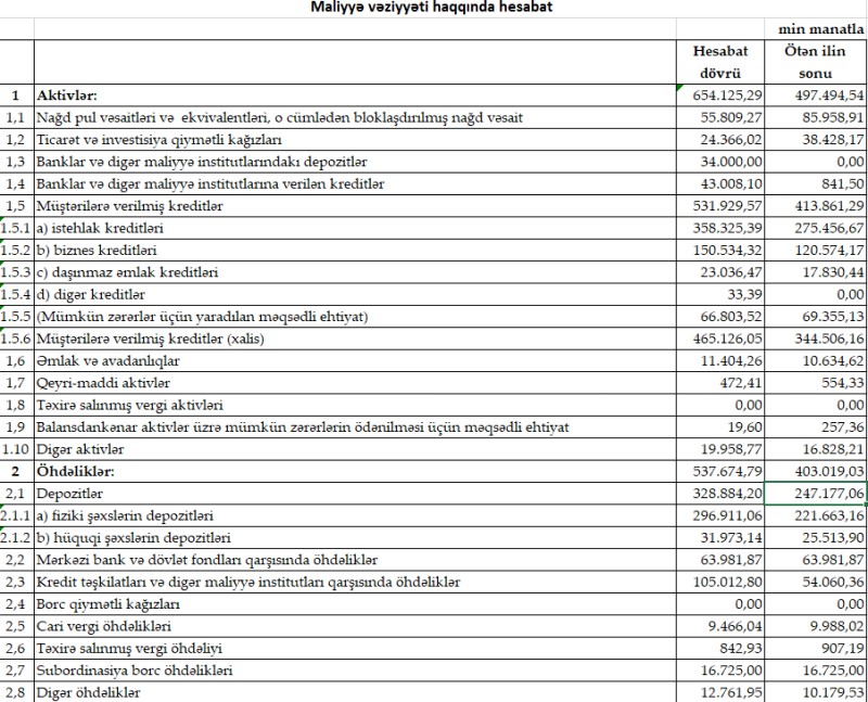 MÜŞTƏRİLƏRƏ VERİLMİŞ KREDİTLƏR ARTIB