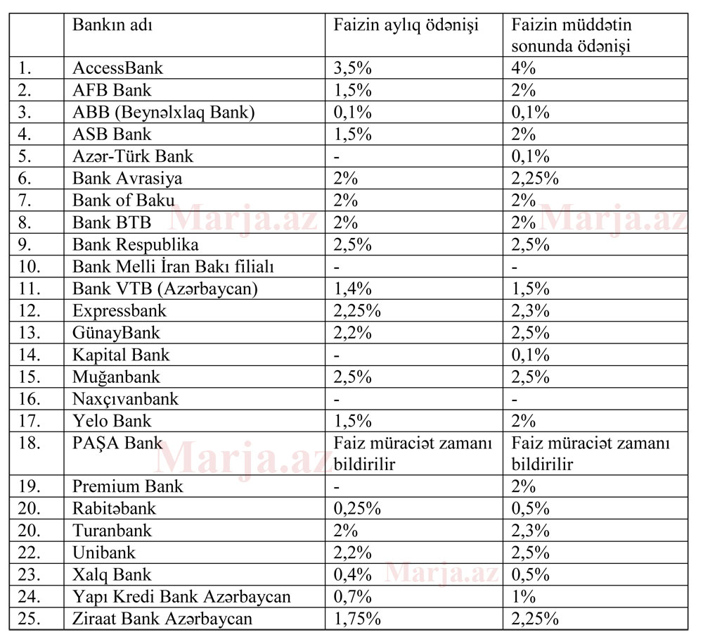 HƏMÇİNİN OXU: Azərbaycan banklarının Manat əmanəti faizləri - YENİ SİYAHI