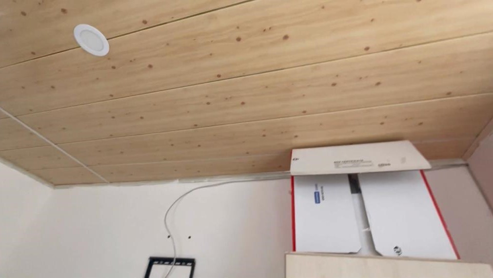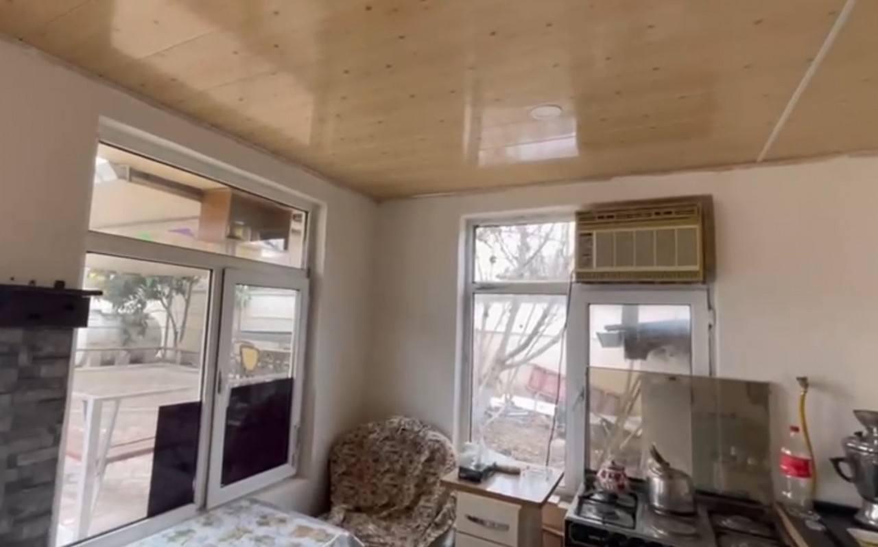 - mətbəx otağının, sanitar qovşağının tavan sahələri yanar üzlük materialla üzlənib və pilləkən qəfəsi taxta konstruksiyadan inşa edilib;