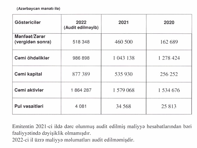 Çap avadanlıqları üzrə xidmətlər göstərən "MAX" MMC hər birinin nominal dəyəri 1000 manat olan 500 ədəd istiqraz buraxır.