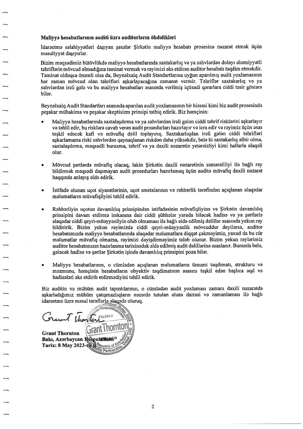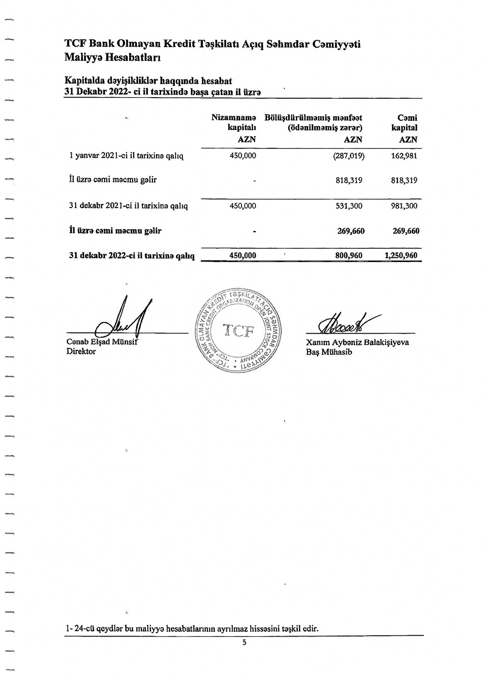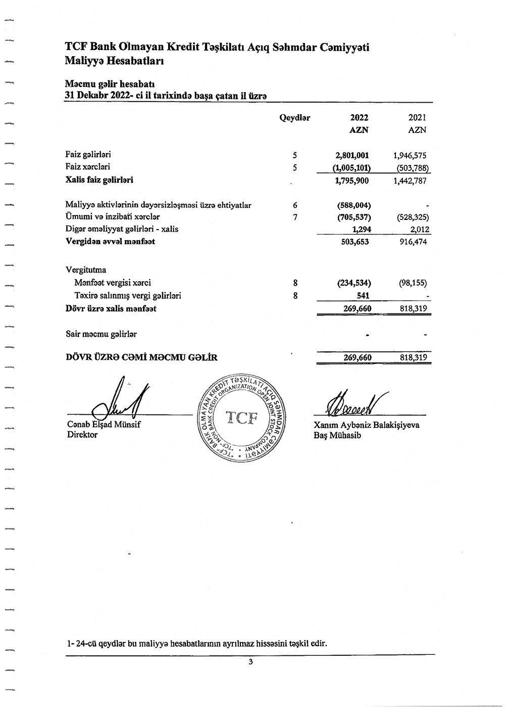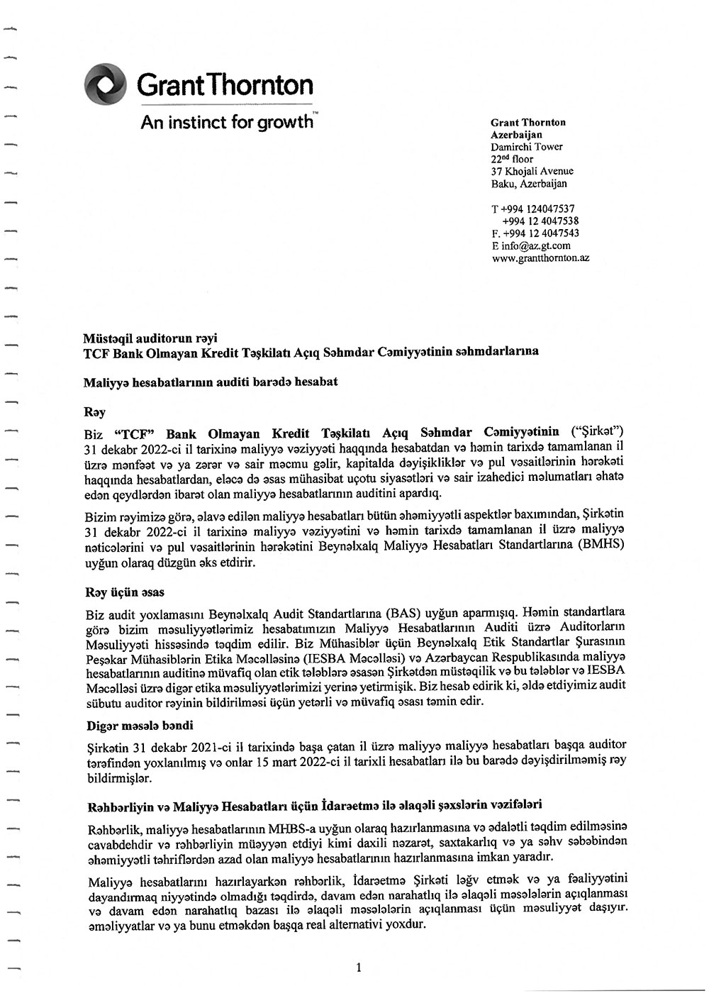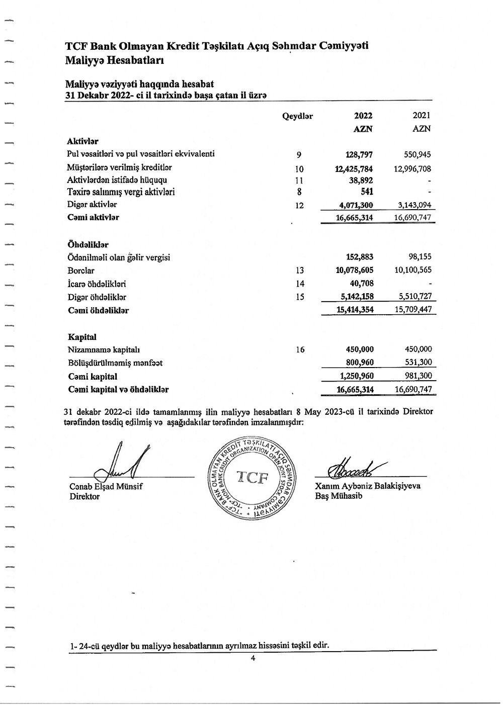 "TCF" BOKT ASC-nin 2022-ci il üzrə maliyyə hesabatları