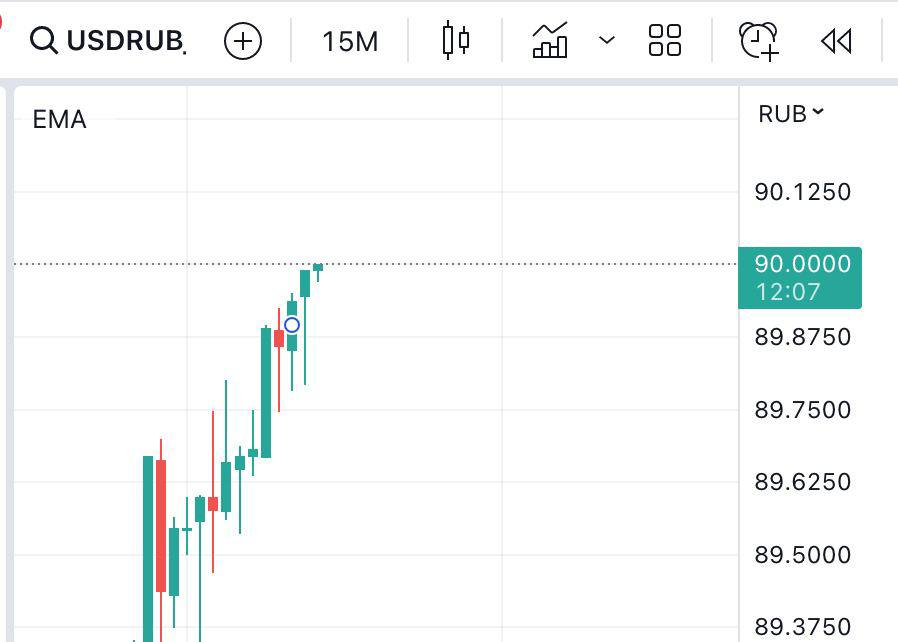 Moskva birjasında dollar 90 rubla kimi bahalaşıb .Moskva birjasında dolların məzənnəsi 2022-ci il martın 28-dən bəri ilk dəfə olaraq 90 rublu ötüb.