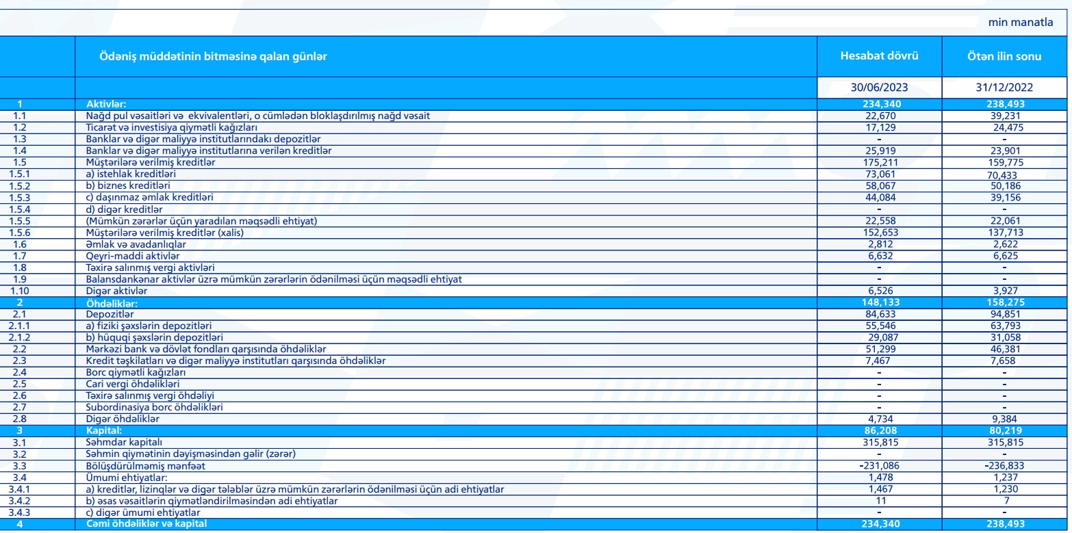 "Bank VTB Azərbaycan"da depozitlər 2023-cü ilin birinci yarısında 2022-ci ilin sonu ilə müqayisədə 10 milyon 218 min manat və ya 10,8% azalaraq 84 milyon 633 manat təşkil edib.