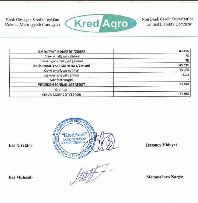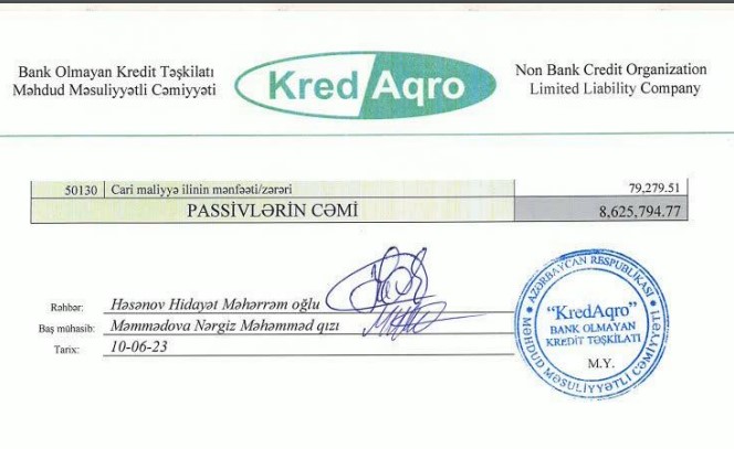 "KredAqro BOKT" 2023-cü ilin ilk 6 ayını xalis mənfəət ilə başa vurub