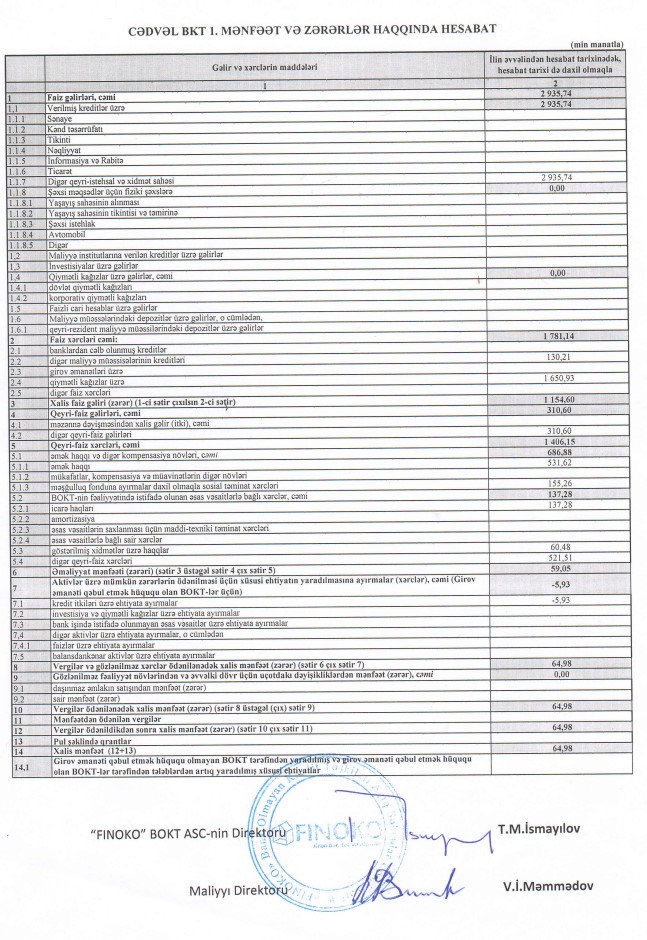 Bank Olmayan Kredit Təşkilatı (BOKT) "FİNOKO" ASC 2023-cü ilin 1-ci yarısını (yanvar-iyun) 65 min manat xalis mənfəət ilə başa vurub. Təşkilat 2022-ci ilin birinci yarısını 186 min manat xalis mənfəət ilə bağlamışdı. Beləliklə, "FİNOKO"nın xalis mənfəəti 2,9 dəfə azalıb.