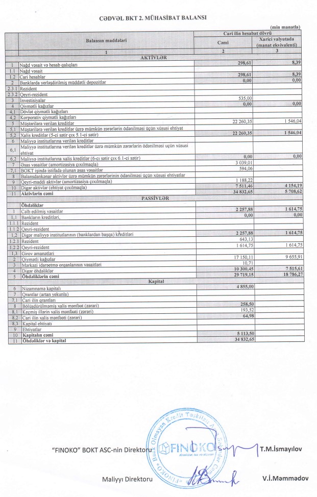 Bölüşdürülməmiş mənfəətin istifadəsilə əlaqədar olaraq BOKT "FİNOKO" ASC-nin cəmi kapitalı ötən ilin İyun ayının sonundakı 7 milyon 911 min manatdan 5 milyon 113 min manata geriləyib.