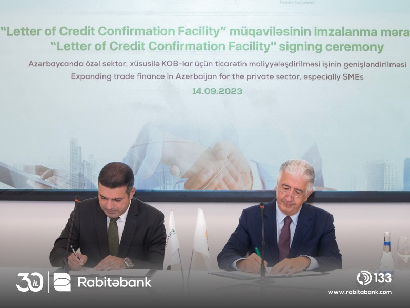Rabitəbank ilə İslam İnkişaf Bankı (İİB) Qrupu üzvü Ticarətin Maliyyələşdirilməsi üzrə Beynəlxalq İslam Korporasiyası (İTFC) arasında özəl sektorun, xüsusən də KOB müştərilərinin ticarət maliyyələşdirmə ehtiyaclarını ödəmək və Azərbaycanda şəriətə uyğun ticarətin maliyyələşdirilməsi həllərinin təşviqinə töhfə vermək üçün 10 milyon ABŞ dolları məbləğində “Letter of Credit Confirmation Facility” (Akkreditiv) müqaviləsi imzalanıb.