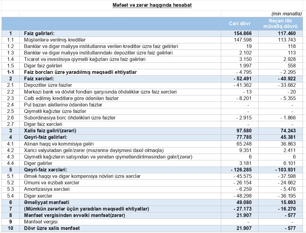 Milyonlarla insanın müştərisi olduğu bank maliyyə vəziyyətini açıqladı