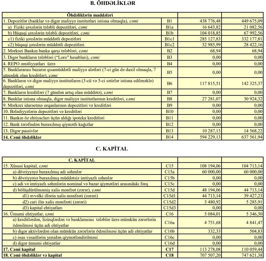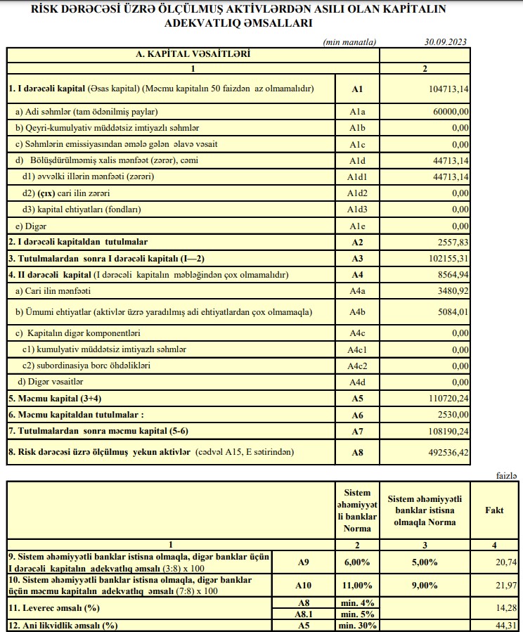 Xalis mənfəətin azalmasına, bu il mümükün zərərlər üçün yaradılan məqsədli ehtiyatlardan vəsaitin qayıtmaması səbəb olub. Əksinə Bank əməliyyat mənfəətindən 125 min manat ehtiyatlara ayırıb. Ötən ilin 9 ayında isə etiyatlardan azad olmuş 1 milyon 289 min manat mənfəətə əlavə olunmuşdu.