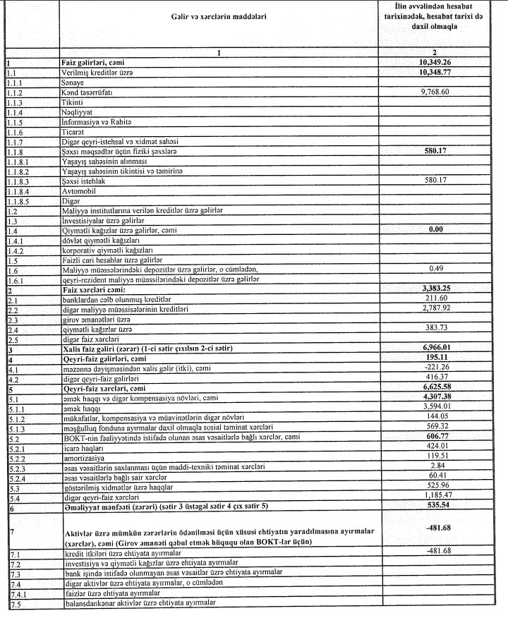 Müqayisə üçün qeyd edək ki, 2024-cü ilin 1-ci yarıında "FINCA Azerbaijan"ın cəmi əməliyyat gəlirləri 9 milyon 654 min manat, cəmi əməliyyat xərcləri 8 milyon 596 min manat, əməliyyat mənfəəti 1 milyon 58 min manat təşkil etmişdi. Ötən ilin ilk 6 ayında kredit təşkilatı aktivlər üzrə mümkün zərərlərin ödənilməsi üçün yaradılan xüsusi ehtiyata vəsait ayırmamışdı və ya ehtiyatdan vəsait qayıtmamışdı. Daşınmaz əmlakın satışından mənfəət və mənfəət vergisi nəzərə alınmaqla Təşkilat ötən ilin ilk yarısını 882 min manat xalis mənfəət ilə bağlamşdı.