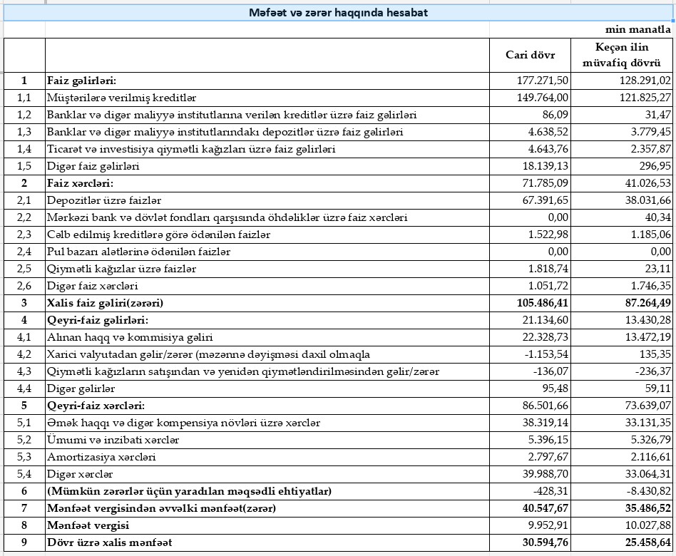 Faiz gəlirlərində artım kredit portfelinin genişlənməsi və faizli aktivlərin həcminin yüksəlməsi ilə bağlıdır. Qeyri-faiz gəlirlərinin daha yüksək templə artması isə komissiya və xidmət gəlirlərinin payının artdığını göstərir.