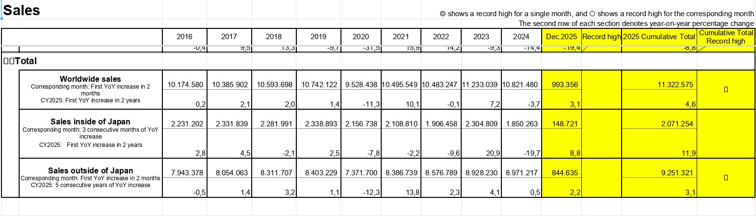Toyota Motor şirkəti cümə axşamı bildirib ki, 2025-ci ildə qlobal miqyasda rekord sayda (11,3 milyon ədəd) avtomobil sataraq ardıcıl altıncı ildir ki, dünyanın ən çox satılan avtomobil istehsalçısı tacını qoruyub saxlayıb. Toyota qrupunun cəmi satışları satışları, ana şirkətin Toyota və Lexus markalı avtomobilləri, eləcə də kiçik avtomobil bölməsi Daihatsu və yük maşını istehsalçısı Hino Motors tərəfindən satılan avtomobillər də daxil olmaqla, bir il əvvələ nisbətən 4,6% artıb. İkinci sıradakı rəqibi almaniyanın Volkswagen Group şirkəti bu ay bildirib ki, ötən il avtomobil satışlar 0,5% azalaraq 9 milyondan bir qədər aşağı düşüb. Ötən il Volkswagen Group, ölkə daxilində xərcləri azaltmağa və Çindəki gərgin rəqabətlə mübarizə aparmağa çalışıb.Toyota 2025-ci ildə qlobal miqyasda 11,3 milyon avtomobil sataraq indiyədək ən yüksək satış rəqəminə (rekord) nail olub. Marja.az xəbər verir ki, bu nəticə ilə şirkət ardıcıl altıncı dəfə dünyanın ən çox avtomobil satan istehsalçısı olub.