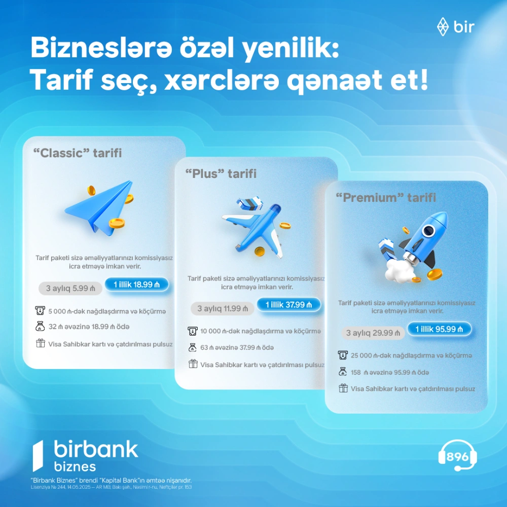Sahibkarlığın inkişafına önəm verən Birbank Biznes Kapital Bank-ın əmtəə nişanı olaraq həm sahibkarların, həm də onların bizneslərinin inkişafına dəstək olur, biznes sahiblərinə innovativ və rahat məhsullar təqdim edir. Birbank Biznes müştərilərində suallar yaranarsa, onlara istənilən vaxt canlı çat vasitəsilə də dəstək göstərilir. Sahibkarlara vaxta qənaət etmək imkanı verən Birbank Biznes sistemi haqqında ətraflı məlumat üçün https://birbank.business/ saytına keçid edin və ya 896 məlumat mərkəzinə zəng edin.
