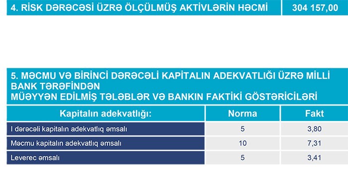 Müştərilərə verilmiş kreditlər 2016-cı ilin sonundakı 252 milyon 322 min manatdan 197 milyon 694 min manata düşüb. Müştərilərin depozitləri isə 284 milyon 42 min manatdan 241 milyon 742 min manata geriləyib.