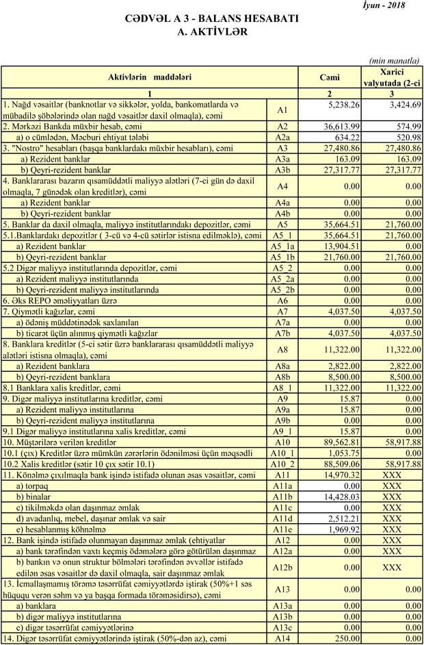 Azər Türk Bankın maliyyə vəziyyəti məlum olub