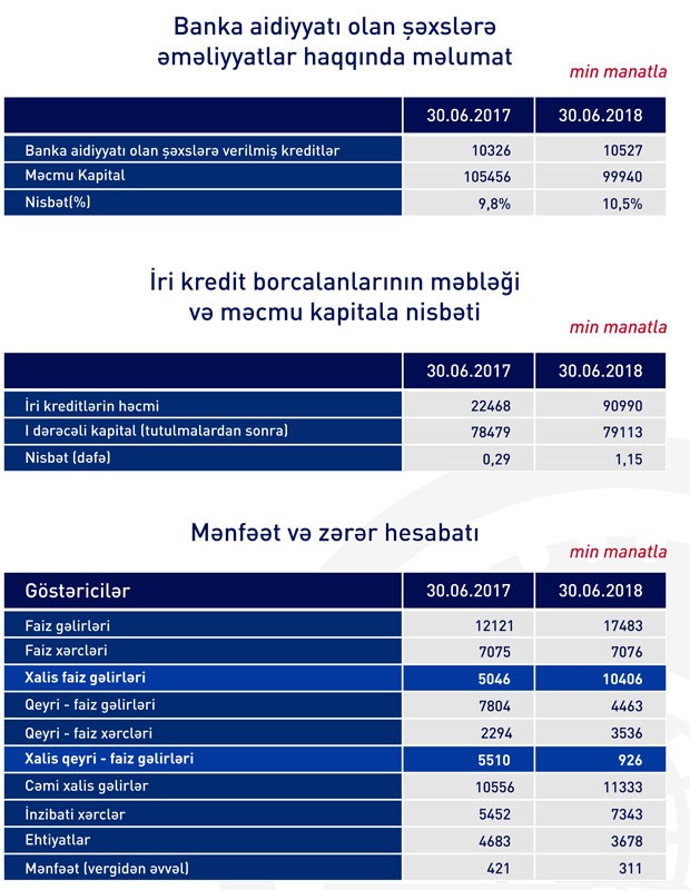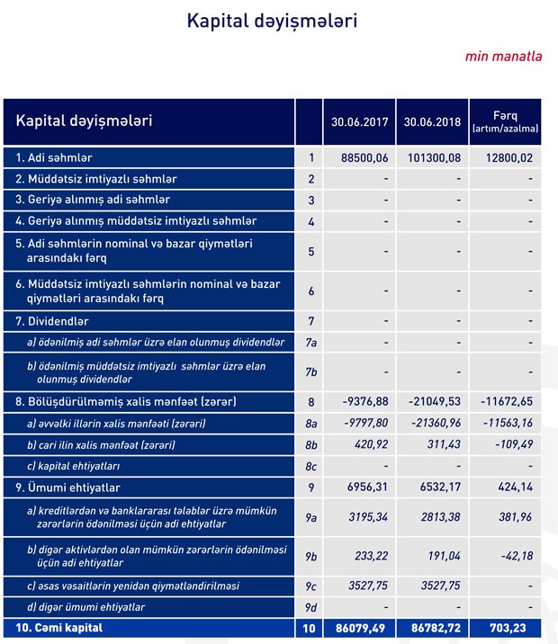 Ötən ilin birinci yarısında 10 milyon 556 milyon manat olan cəmi xalis gəlirlər cari ilin birinci yarısında 11 milyon 333 milyon manata yüksəlsə də, artan inzibati xərclərə və ehtiyatlara ayırmalar ilə əlaqədar olaraq xalis mənfəət bir qədər azalıb.