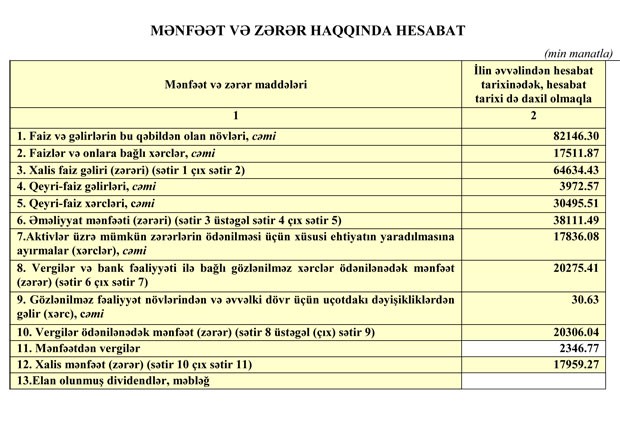 İri Azərbaycan bankı 18 milyon manat qazanıb