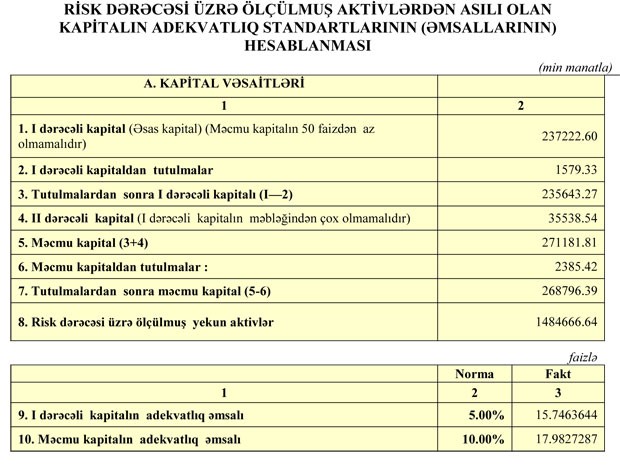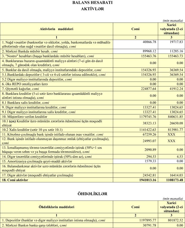Müqayisə üçün bildirək ki, 2017-ci ilin 9 ayında “Xalq Bank”ın cəmi gəlirləri 84 milyon 271 min manat (74 milyon 872 min manatı faiz, 9 milyon 399 min manatı qeyri-faiz gəlirləri), cəmi xərcləri isə 46 milyon 141 min manat (19 milyon 809 min manatı faiz, 26 milyon 332 min manatı qeyri-faiz xərcləri) təşkil etmişdi.