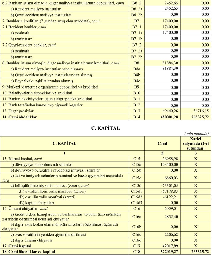 30 Sentyabr 2018-ci il tarixində cəmi kredit qoyuluşlarının 147 milyon 190 min manatını vaxtı keçmiş kreditlər təşkil edib. 31 Dekabr 2017-ci il tarixində bu məbləğ 147 milyon 296 min manat idi.
