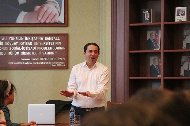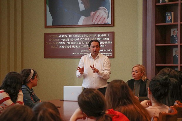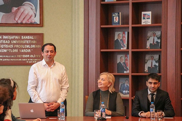 Tələbələr qarşısında təqdimatla çıxış edən qonaq öz təcrübəsindən danışıb. Onun sözlərinə görə, ingilis dilinin dərinliklərini öyrənmək zamanın tələbidir: "Hər bir layihə iştirakçısının seçdiyi peşə ingilis dilinin biznes istiqamətinin öyrənilməsini zəruri edir. Təbii ki, hər biriniz AccessBank-ın yaratdığı gözəl fürsətdən maksimum faydalanmalı və biliyinizi artırmalısınız".