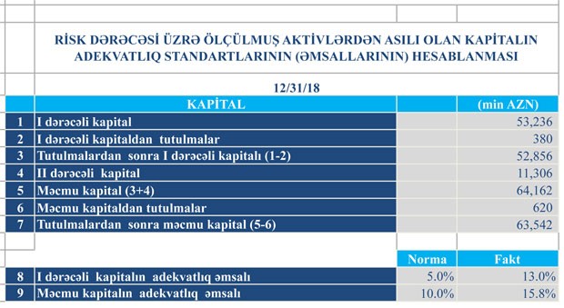 Ötən ilin sonunda “Turanbank”ın 63 milyon 542 min manat məcmu kapitalı olub.Bu da minimum tələb olan 50 milyon manatdan yüksəkdir.