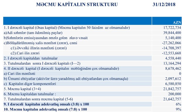 2018-ci ilin sonunda “Amrahbank” 21 milyon 642 min manat məcmu kapitala malik olub.