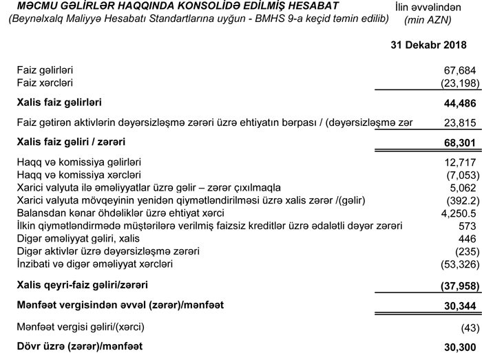 Xəbər verdiyimiz kimi, 2018-ci ili 30 bankdan 25-i xalis mənfəətlə başa vurub. "Unibank" ən çox xalis mənfəət əldə etmiş 4-cü bankdır.