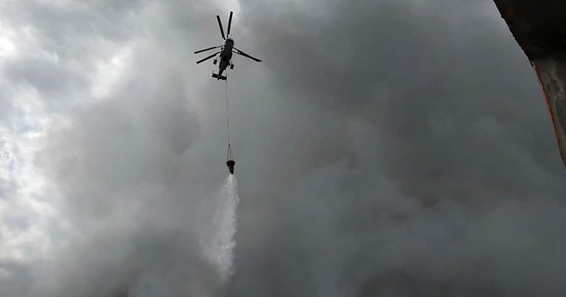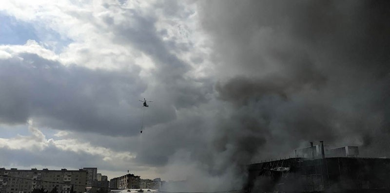 Bakıda yanğının söndürülməsinə helikopter cəlb olundu