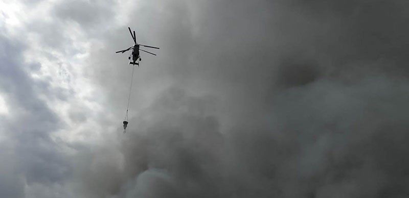 Fövqəladə hallar naziri Kəmaləddin Heydərov KİV nümayəndələrinə açıqlamasında yanğını söndürmək üçün iki helikopterin cəlb olunduğunu açıqlayıb: “İkisi cəlb olunub, biri də hadisə yerinə gəlir. Ciddi bir yanğındır. Yaxşı ki, digər binalara keçməyib, qarşısı alınıb”.