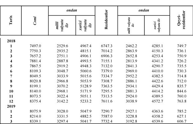 Martda milli valyutadakı əmanətlər 34 milyon manat azalıb, xarici valyutadakı əmanətlər isə 159,2 milyon manat artıb.