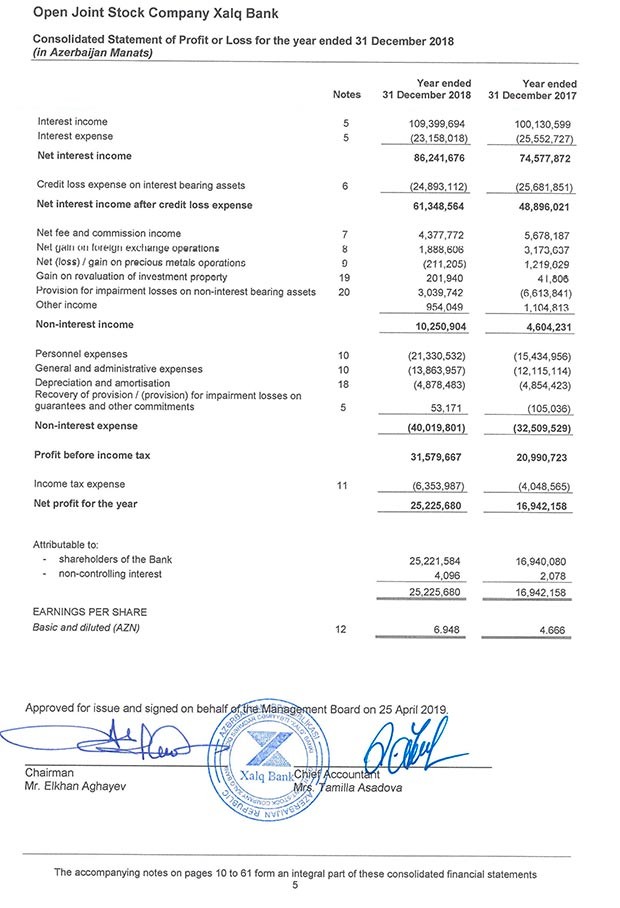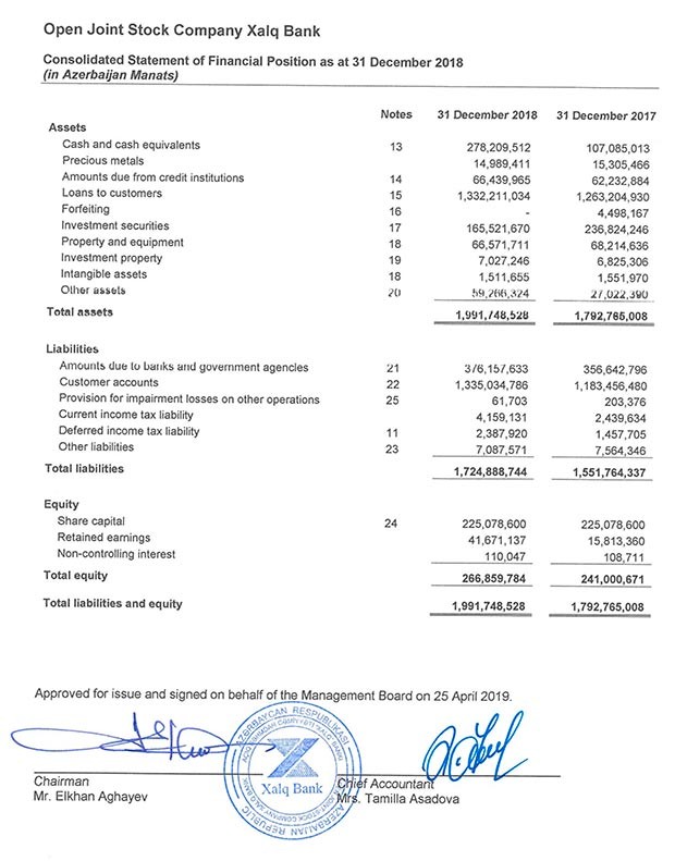 Qeyd edək ki, 2018-ci ildə "Xalq Bank" böyüyüb, qazancı artıb. 2017-ci illə müqayisədə 2018-ci ildə Bankın cəmi aktivləri 11% artaraq 1 milyard 992 milyon manata, xalis mənfəəti isə 49% artaraq 25 milyon 226 min manata yüksəlib.