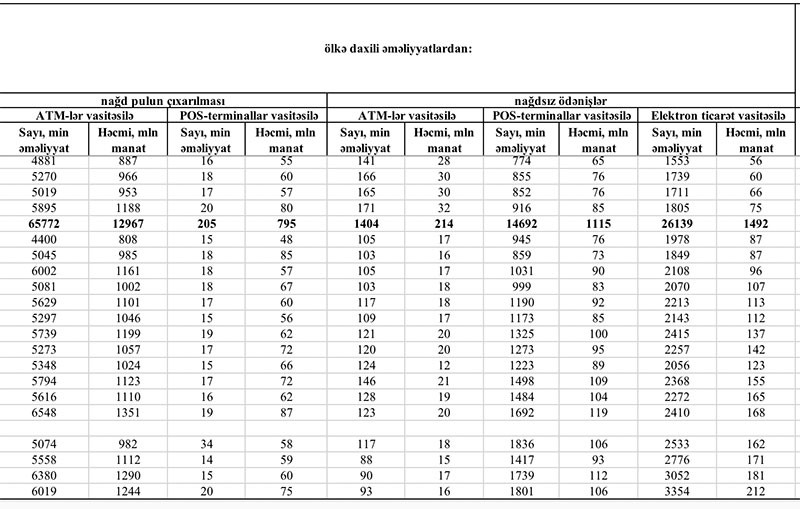 2018-ci ilin sonu ilə müqayisədə isə yanvar-aprel ayları ərzində (ilk 4 ayda) cəmi ödəniş kartlarının sayı 210 min ədəd, o cümlədən sosial kartların sayı 1 min ədəd, əmək haqqı kartlarının sayı 56 min ədəd, sosial kart və əməkhaqqı kartı olmayan digər debet kartlarının sayı isə 219 min ədəd artıb. Kredit kartlarının sayı isə 65 min ədəd azalıb.