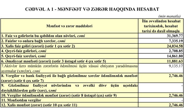 Müqayisə üçün qeyd edək ki, “Nikoyl Bank” 2018-ci ilin birinci yarısını 45 milyon 860 min manat zərər ilə bağlamışdı.