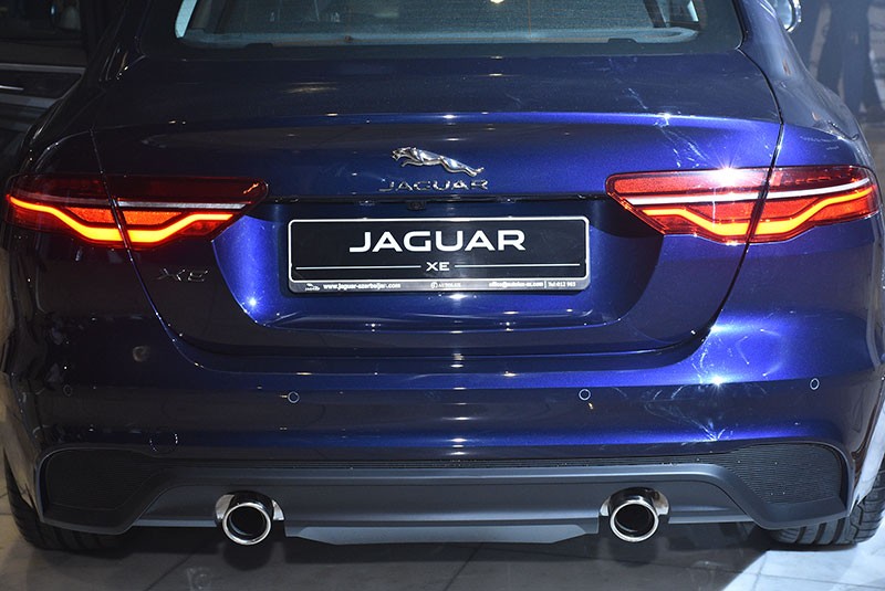Yeni, LED əsaslı ön fənərlər və gözəl görünüşə malik, imza xüsusiyyəti daşıyan “J” formalı gündüz fənərləri avtomobilə məqsədyönlü görünüş verir. Avtomobilin arxa hissəsindəki yeni bamper dizaynı və tamamilə LED əsaslı, yenilənmiş imza xüsusiyyətli qrafikanı özündə əks etdirən daha incə arxa qabarit işıqları avtomobilin vizual enini ön plana çıxarmaqla ən son XE modelinə daha “yerə yatmış” görünüşü verir.