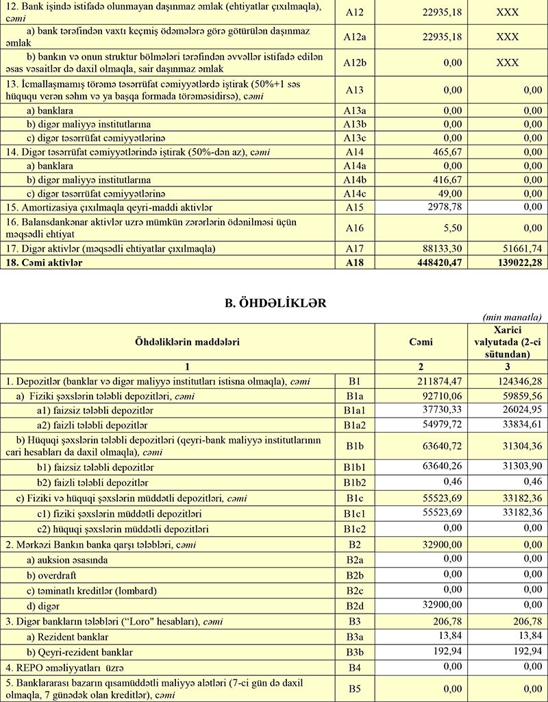 2019-cu ilin sonunda Bank 496 milyon 193 min manat cəmi aktivlərə malik idi və aktivlərin 245 milyon 695 min manatını müştərilərə verilən kreditlər təşkil etmişdi.