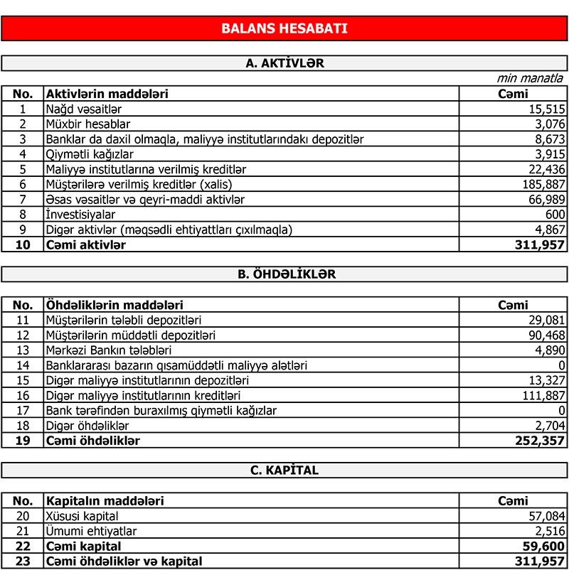 Qeyd edək ki, dövr ərzində əmanətlərdə 3% artım qeydə alınıb və nəticə etibarilə əmanət portfeli 119 milyon 549 min manatadək yüksəlib.