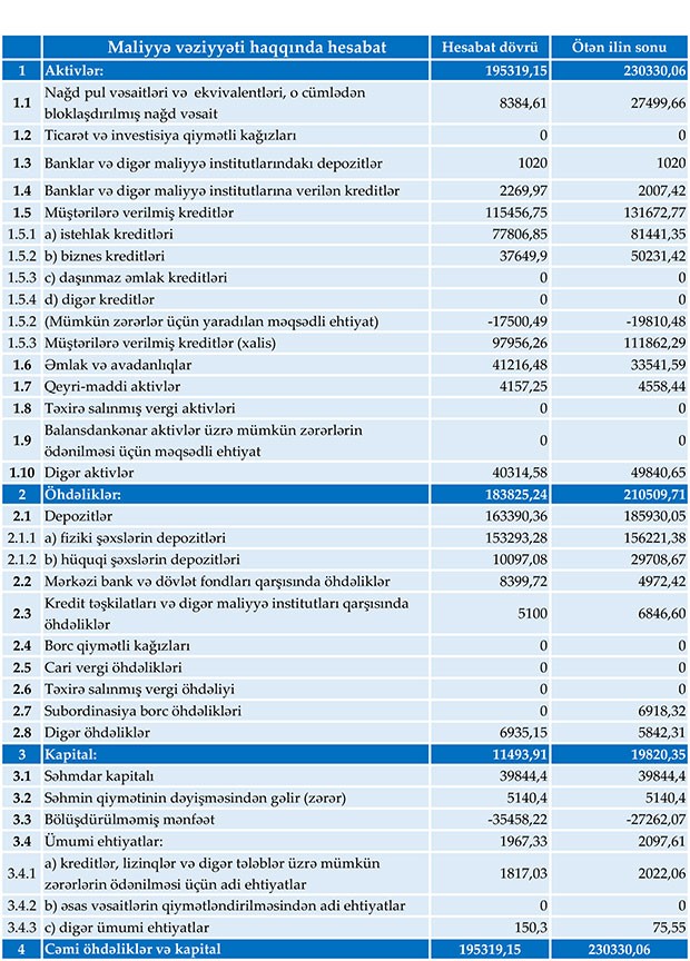 2018-ci ilin yanvar-sentyabr dövrü ilə müqayisədə 2019-cu ilin yanvar-sentyabr dövründə faiz xərcləri 1 milyon 111 min manat artaraq 9 milyon 466 min manat, qeyri-faiz xərcləri isə 1 milyon 275 min manat azalaraq 9 milyon 906 min manat təşkil edib.