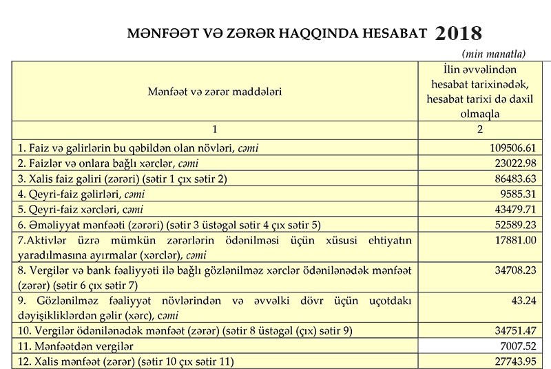 3-cü böyük özəl bankdan 33 milyon manatdan çox xalis mənfəət