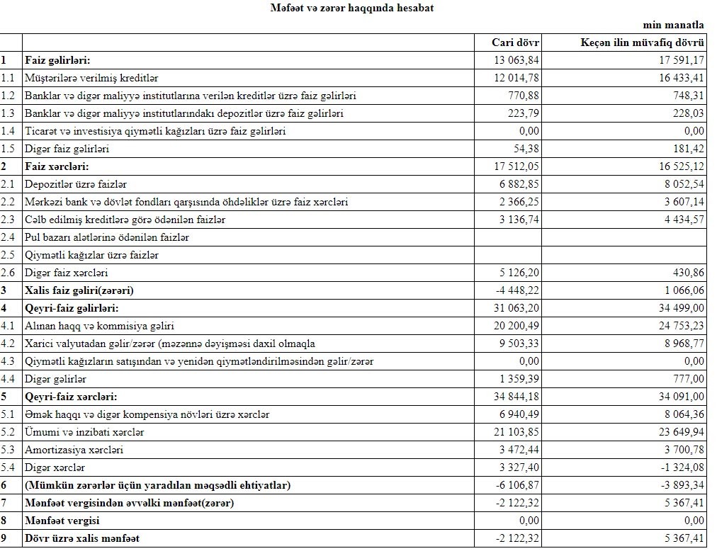 Müqayisə üçün qeyd edək ki, 2018-ci ildə “AGBank”ın cəmi gəlirləri 52 milyon 90 min manat, cəmi xərcləri isə 50 milyon 616 min manat, əməliyyat mənfəəti 1 milyon 474 min manat təşkil etmişdi. Eyni zamanda, mümkün zərərlər üçün yaradılan məqsədli ehtiyatlardan 3 milyon 893 min manat azad olmuş və mənfəət 5 milyon 367 min manata yüksəlmişdi.