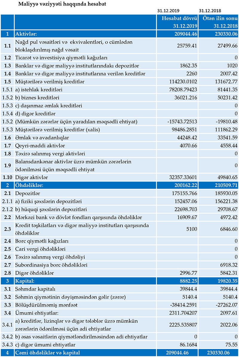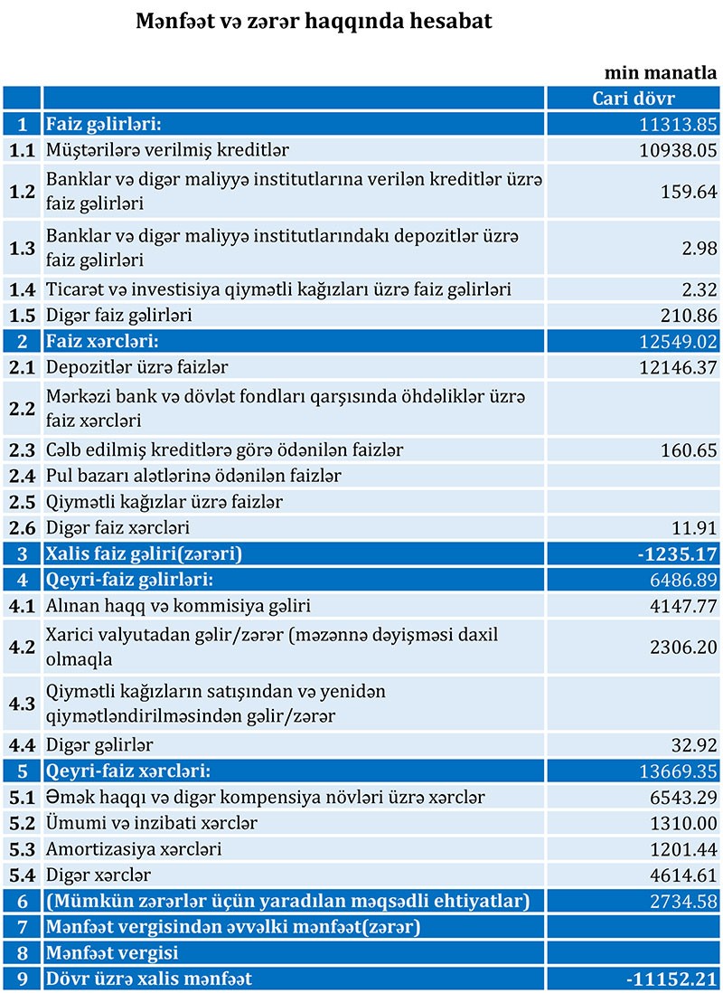 Müqayisə üçün qeyd edək ki, 2018-ci ildə “Amrahbank”ın cəmi gəlirləri 16 milyon 889 min manat, cəmi xərcləri 29 milyon 442 min manat təşkil etmişdi. Bank həmən ili 12 milyon 553 min manat zərər ilə başa vurmuşdu.