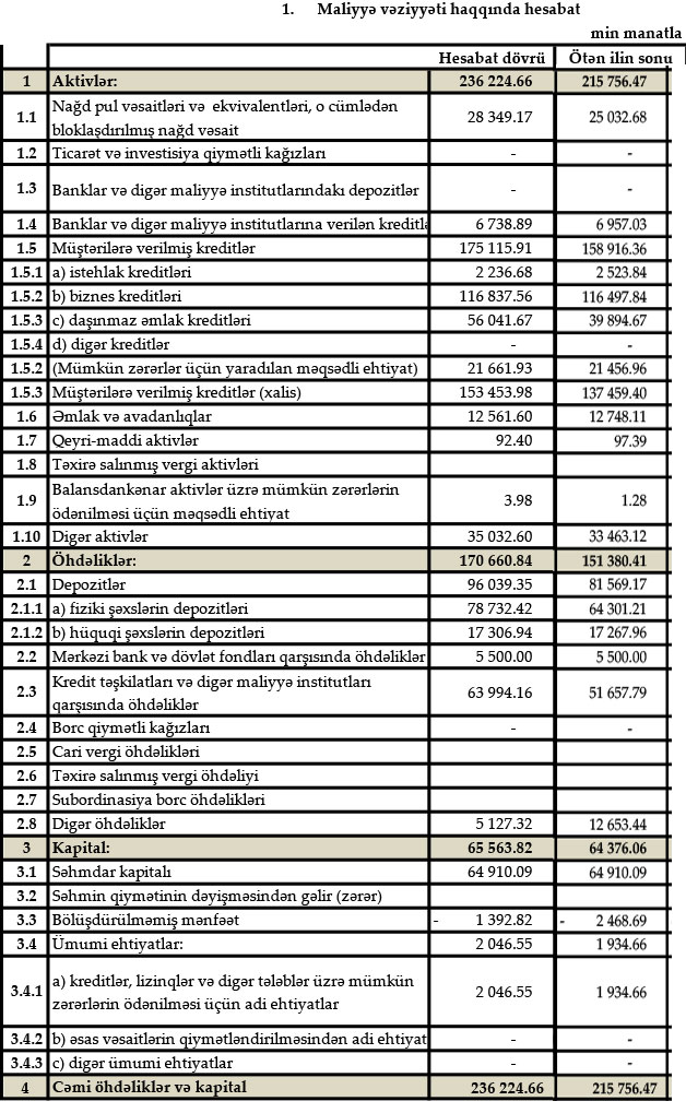 MÜŞTƏRİLƏRƏ VERİLƏN KREDİTLƏR ARTIB, BANK BÖYÜYÜB