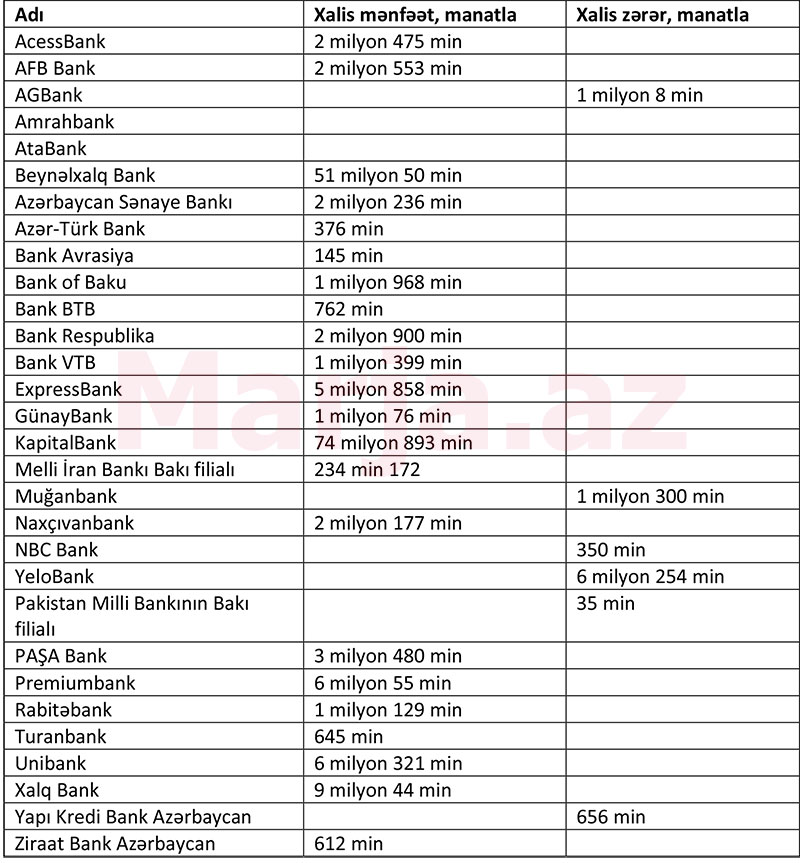 22 bank mənfəət, 6 bank zərər açıqlayıb - SİYAHI, YENİLƏNİB