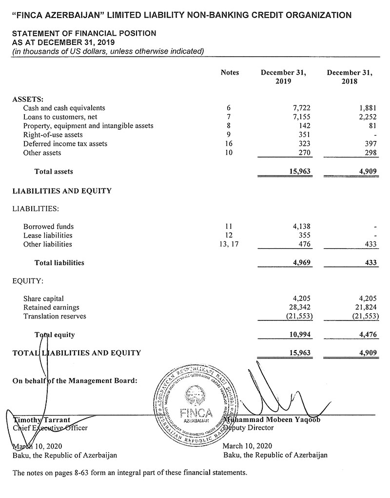Ötən il “FINCA Azerbaijan”ın cəmi gəlirləri 9 milyon 595 min dollar (16 milyon 311 min manat), cəmi xərcləri 3 milyon 77 min dollar (5 milyon 231 min manat) təşkil edib. Gəlirlər xərcləri üstələdiyindən 6 milyon 518 min dollar xalis mənfəət yaranıb.