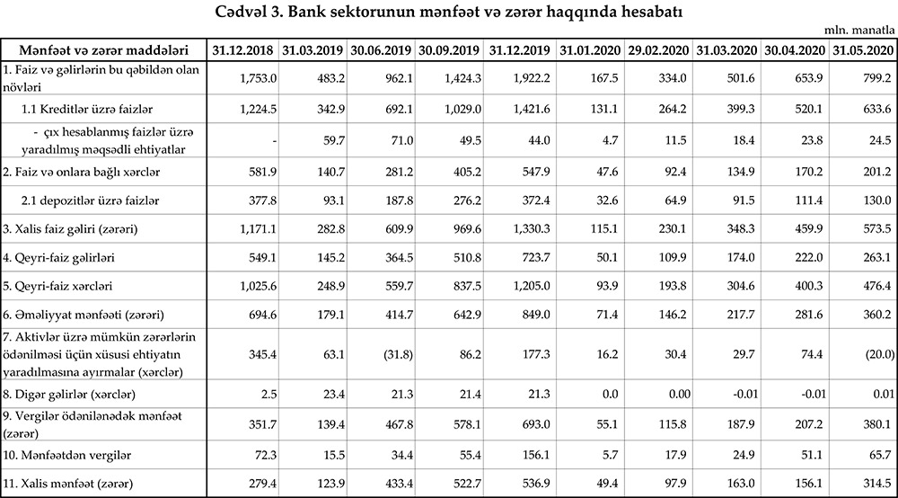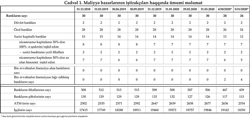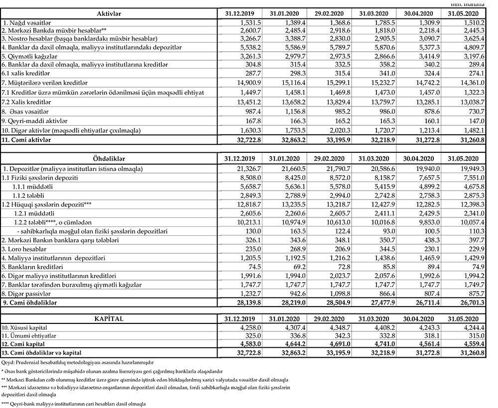 Azərbaycan Mərkəzi Bankı 31 may 2020-ci il tarixinə olan bank sektorunun əsas göstəricilərini açıqlayıb.