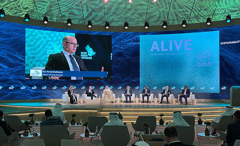 “Dayanıqlılıq və iqtisadi inkişaf” adlı nazirlər panelində çıxış edən Pərviz Şahbazov ekoloji, enerji və iqtisadi dayanıqlılıq arasında balansın təmin olunmasının vacibliyini vurğulayıb. Ölkəmizdə bərpa olunan enerji mənbələrindən istifadənin inkişafının Azərbaycan Respublikasının Prezidenti cənab İlham Əliyev tərəfindən sosial-iqtisadi inkişaf üzrə milli prioritetlər sırasına daxil edildiyini bildirən nazir, növbəti onillik ərzində ölkəmizdə “yaşıl enerji” üzrə qoyuluş güclərinin payının 30%-a çatdırılmasının hədəfləndiyini diqqətə çatdırıb. Çıxış zamanı işğaldan azad edilmiş ərazilərimizin yaşıl enerji zonasına çevrilməsi istiqamətində işlərin aparıldığı bildirilib.