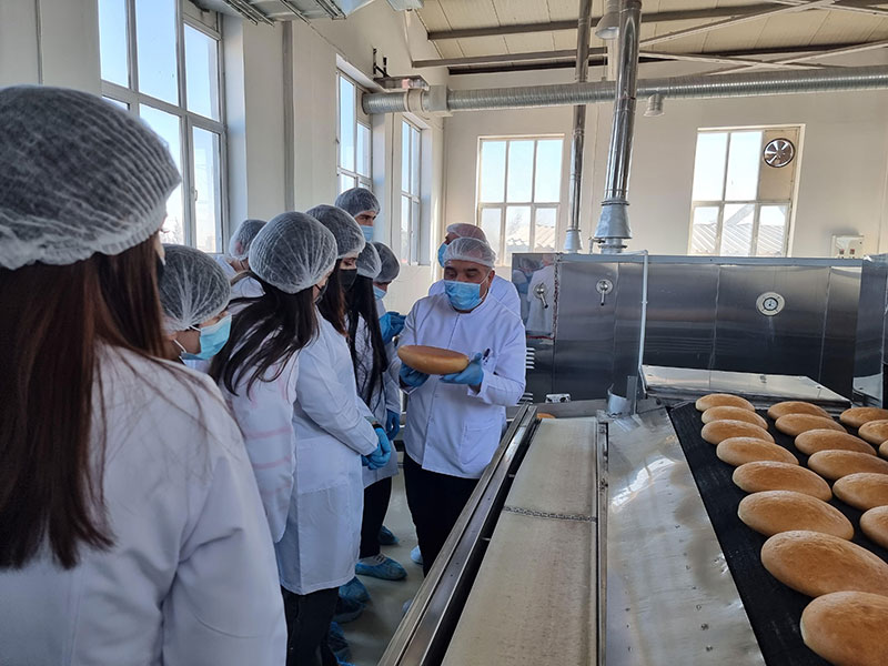 Tələbələr əsas xammal olan unun çeşidlənməsi və labaratoriya analizinin necə aparılması, çörəyin hazırlanmasında istifadə olunan inqridiyentlərin keyfiyyəti ilə tanış olublar, çörəyin hazırlanması və daşınması prosesini izləyiblər.