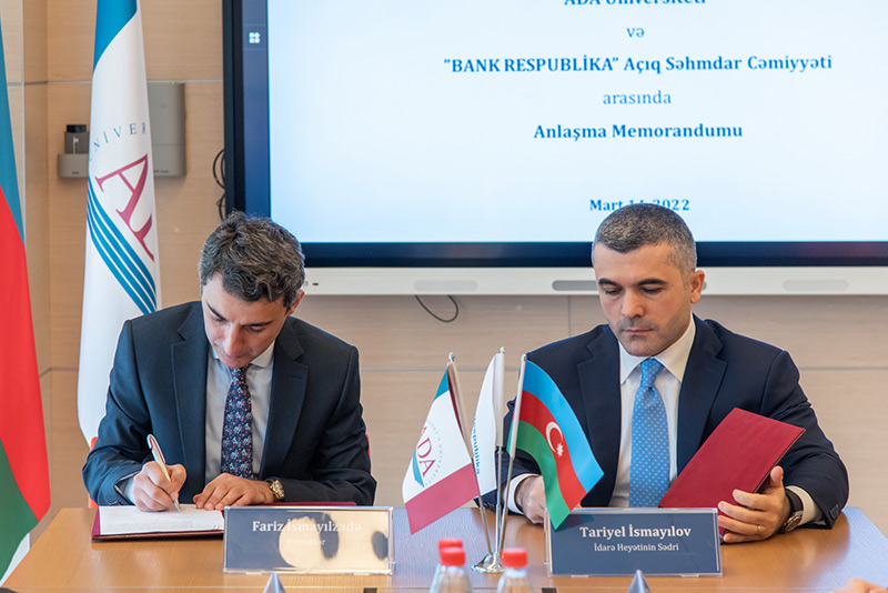 Sənədi ADA Universitetinin İcraçı prorektoru Fariz İsmayılzadə və “Bank Respublika”nın İdarə Heyətinin sədri Tariyel İsmayılov imzalayıblar.