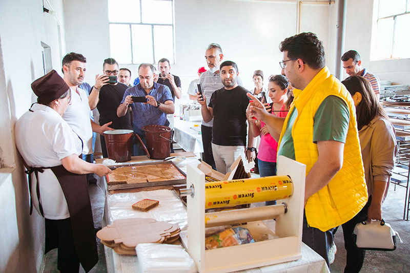2 gün davam edən press-tur çərçivəsində jurnalistlər ilk öncə üçün Bankın maliyyə dəstəyi verdiyi şəki halvası istehsal edən "Əmrah" müəssəsini ziyarət ediblər. Burada onlar halva istehsalı prosesinin bütün mərhələləri ilə tanış olublar.