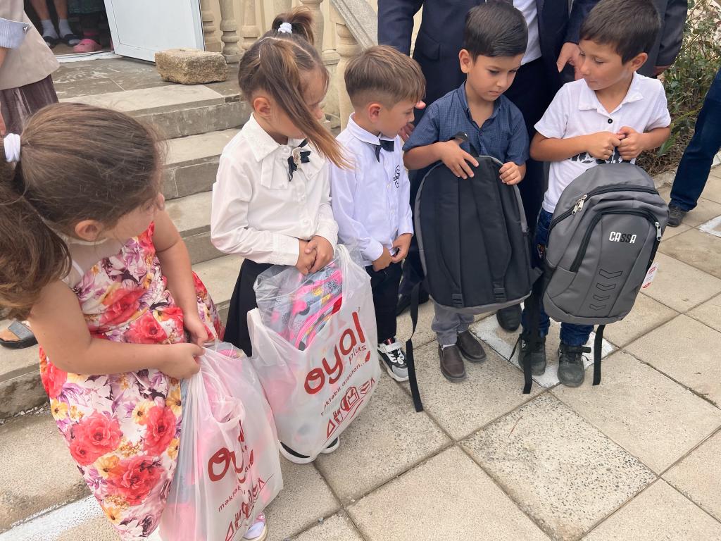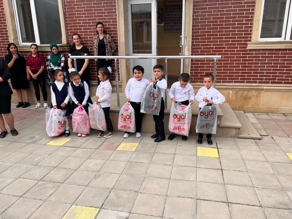 Belə ki, Şabran rayonu üzrə Xəlfələr, Dağbilici, Xəlilli, Çölquşçu, Çayqaraqaşlı, Hacıqaraqaşlı, Aygünlü və Xırdaoymağa kənd məktəblərində, Siyəzən rayonu üzrə isə Məşrif, Qozağacı, Dağqyşçu, Ramazanov adına 5 saylı şəhər məktəbi, Gilgilçay və Tağay orta məktəblərində 1-ci sinfə gedəcək bütün şagirdlərinə məktəbli çantası və lazım olan bütün dərs ləvazimatları təqdim olunub.