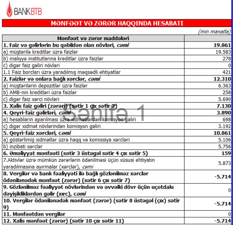 BTB üçüncü rübün maliyyə nəticələrilə bağlı məlumat yaydı